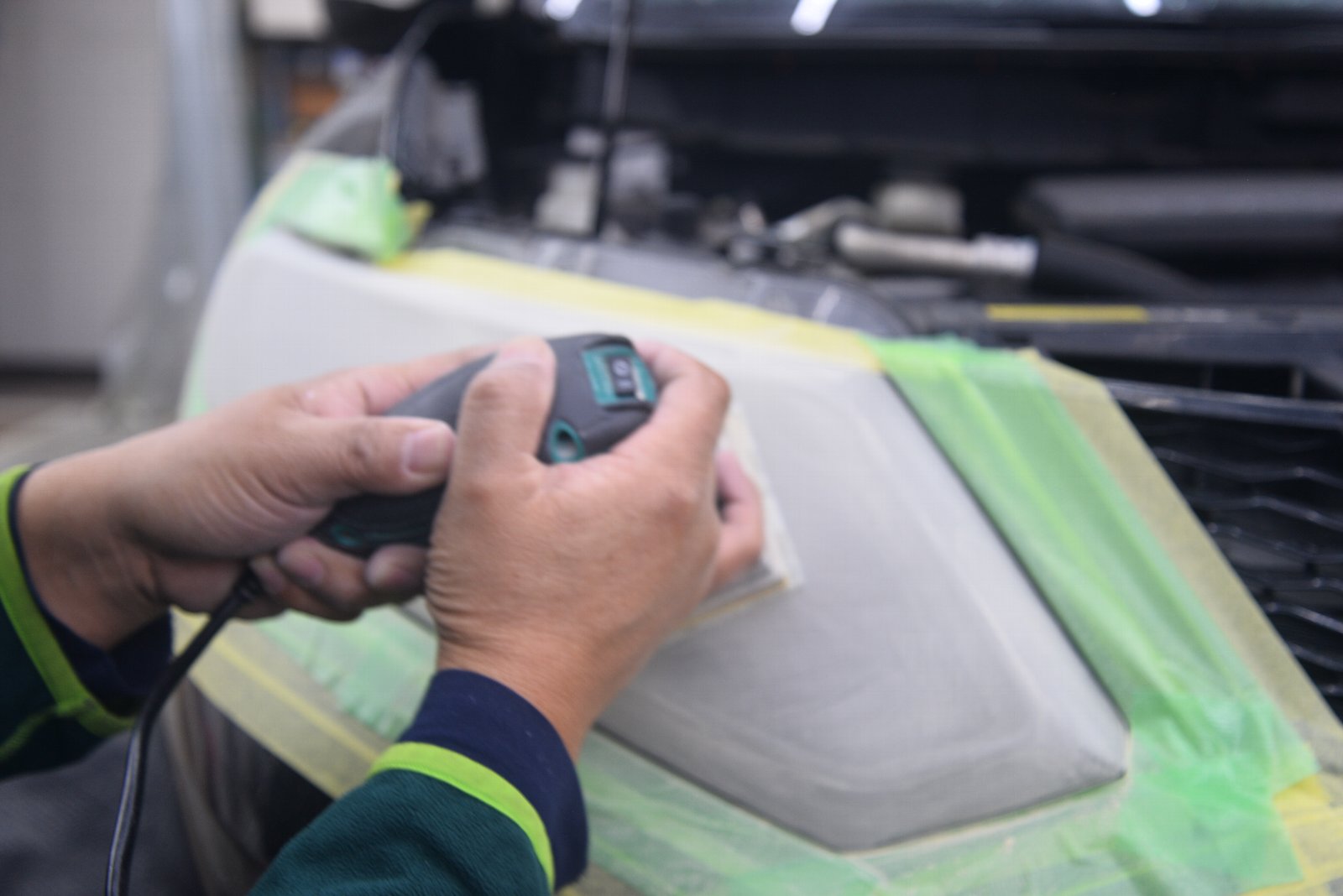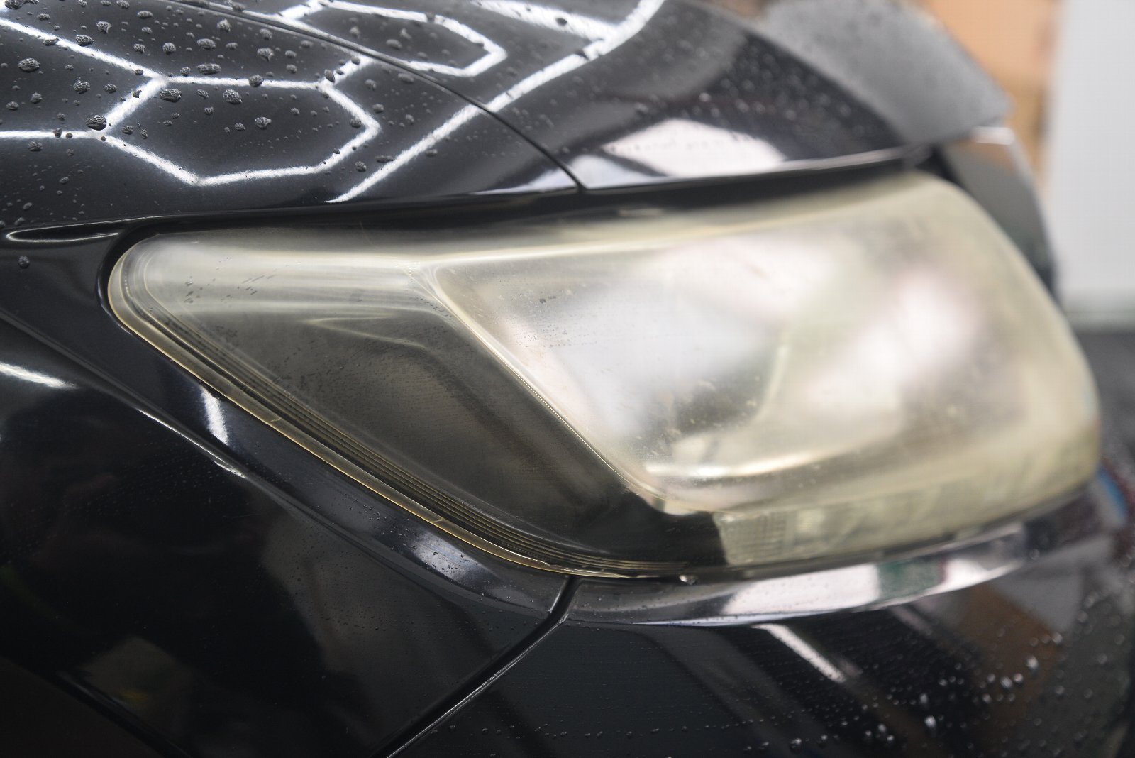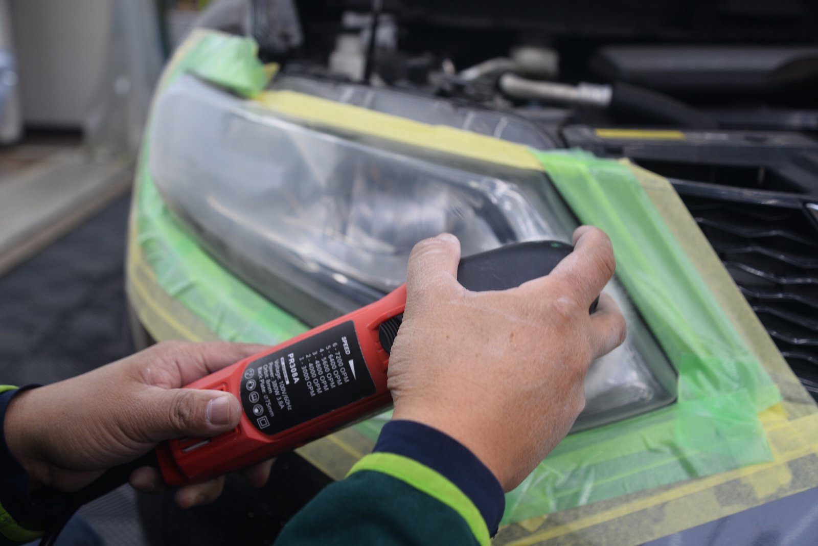 こんな複雑な形状のヘッドライトに貼り付ける施工技術、