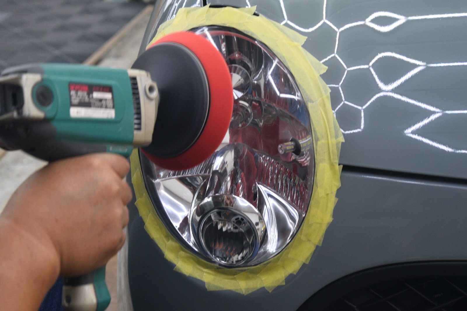ポリッシャーで軽く磨いて、